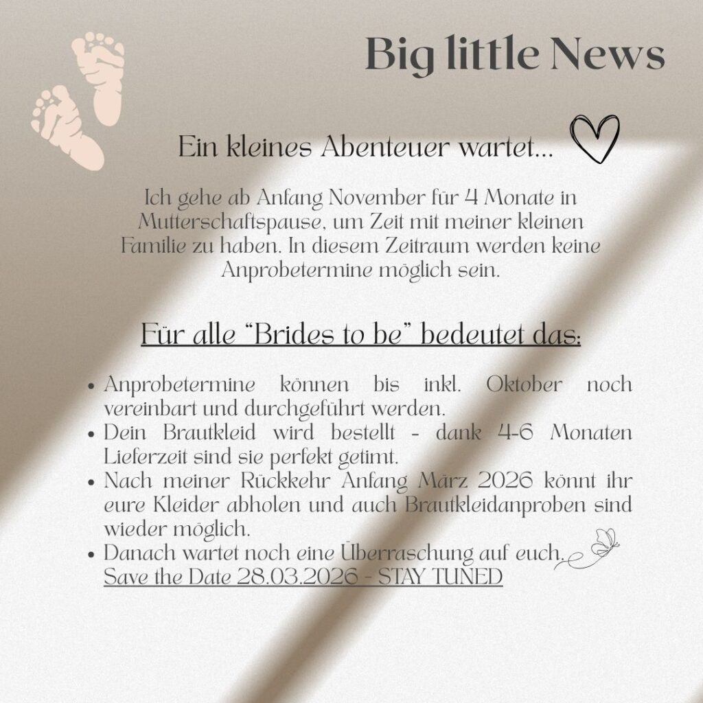 Ich glaube, dass jede Braut einzigartig ist – und genauso individuell ist auch der Service, den ich dir biete. Deshalb gibt es bei mir keine Hektik, keinen Druck. Ich nehme mir die Zeit, mit dir in Ruhe nach dem Kleid zu suchen, das dich glücklich macht.